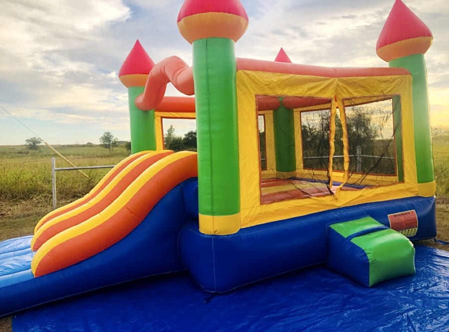This bounce house is equipped with an easy entrance and exit, large netted windows for ventilation and easy viewing, and has an open top to keep the kids cool in Texas!! This unit has been thoroughly inspected and approved in the state of Texas!