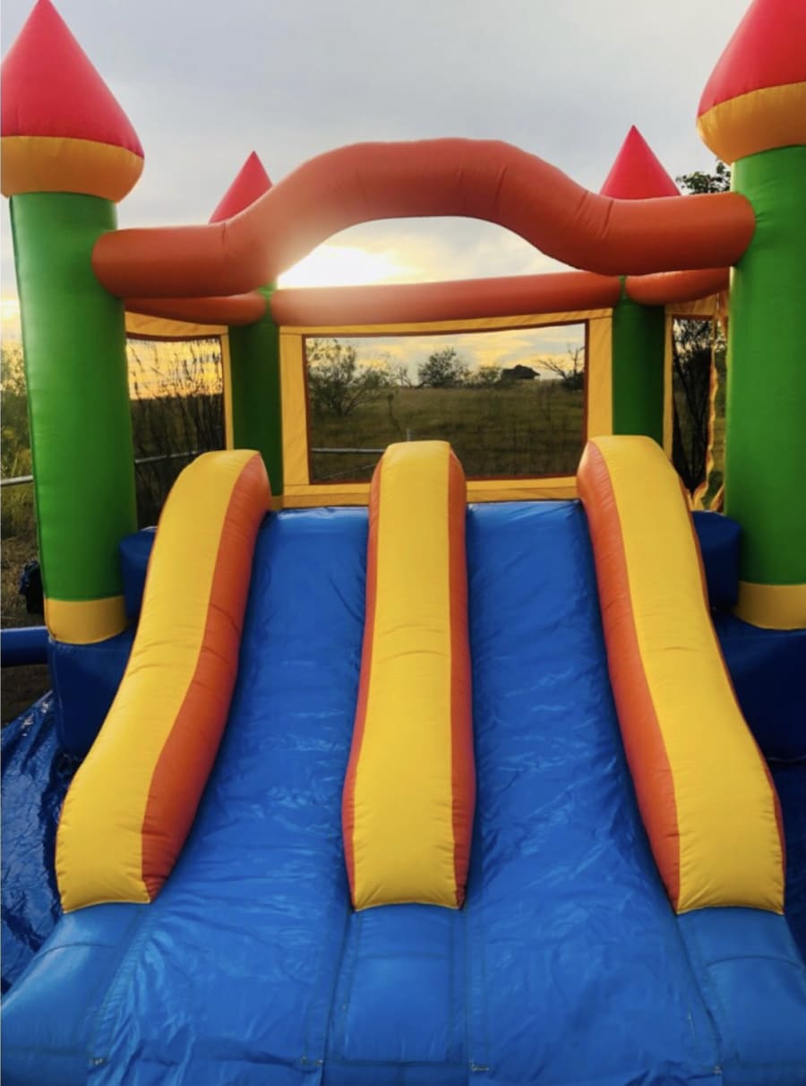 The Double Lane Combo is a 2-in-1 meaning it has a bounce house AND slides! It is designed to pair with any theme or gender! This is a commercial combo so any age can join in on the fun, from small kiddos to adults! It is perfect for outdoor parties, church and corporate events and school functions! Its bright colors add excited to your event and provides hours of fun for everyone!