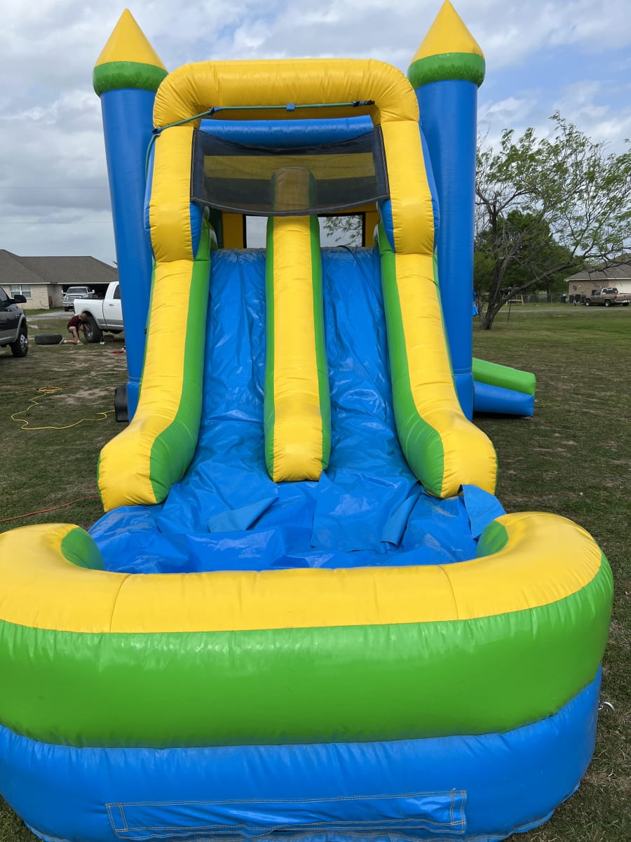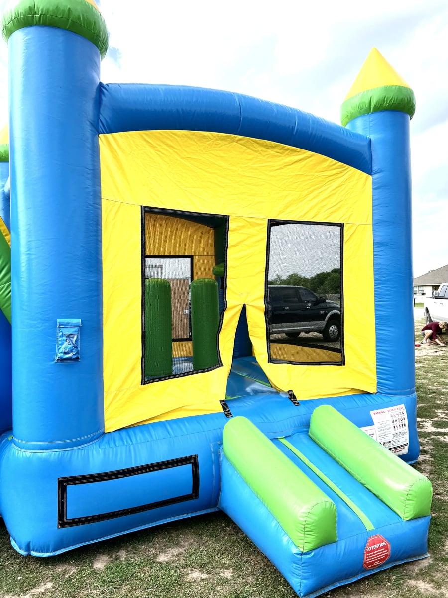 This bounce house is equipped with an easy entrance and exit, large netted windows for ventilation and easy viewing, and has a closed top to keep you cool in Texas!! This unit has been thoroughly inspected and approved in the state of Texas!